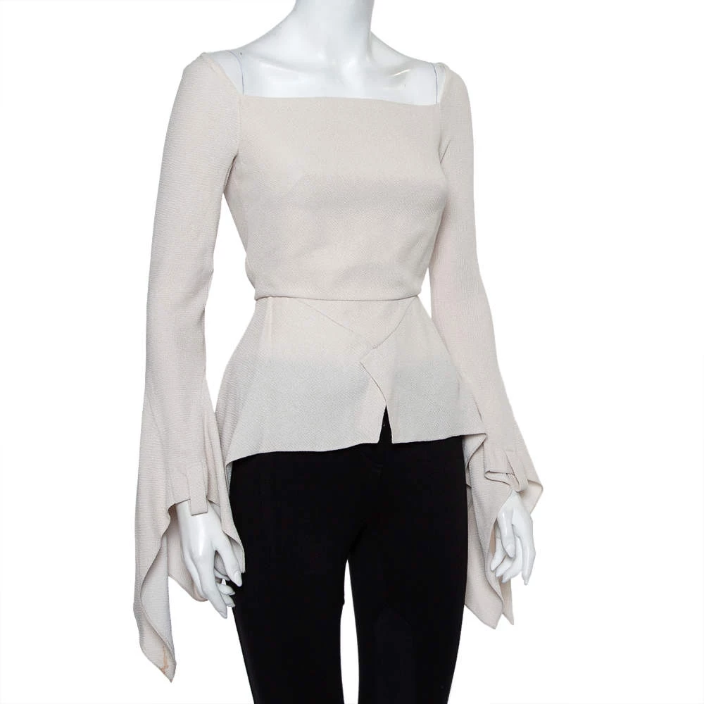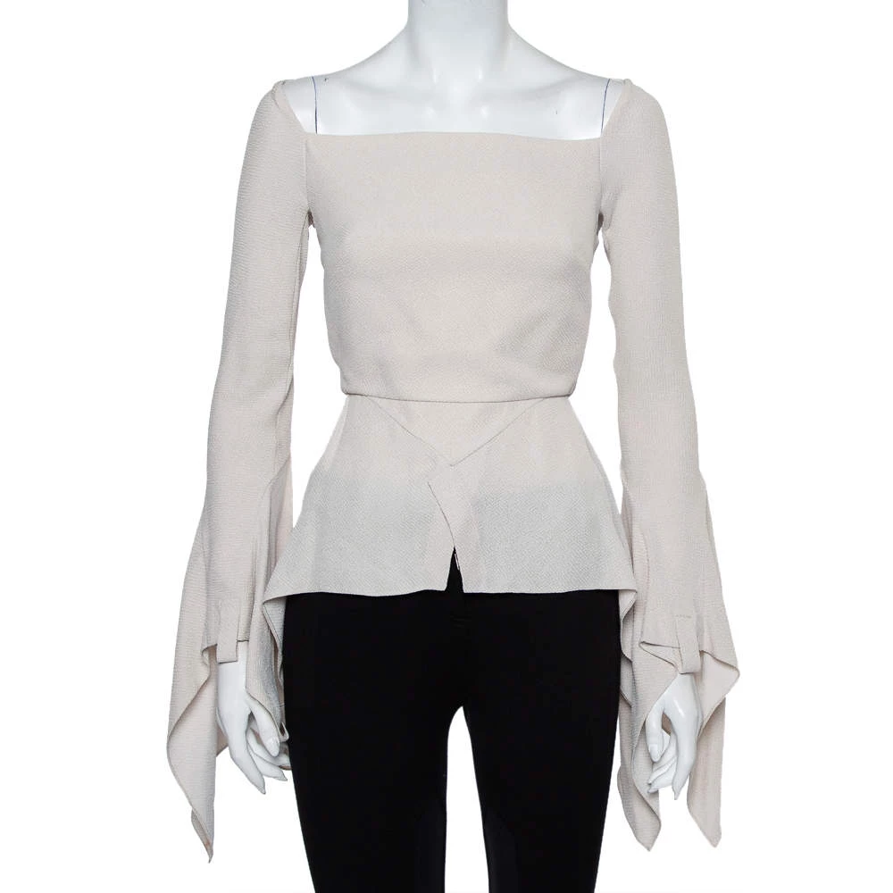 This top from Roland Mouret will surely be a closet staple. It is made from quality fabrics and styled with a Florentine neckline, asymmetrical cuffs, and a rear zipper. While the beige hue gives off a pleasant vibe, the peplum style adds to the beauty of its structure and makes it a fashionable creation.