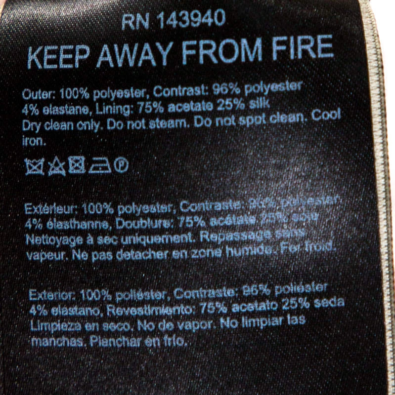 - Fabric: Fabric 1: 100% Polyester ; Fabric 2: 96% Polyester, 4% Elastane ; Lining: 75% Acetate, 25% Silk