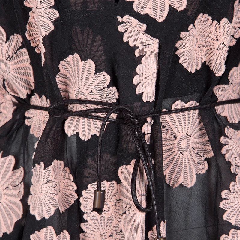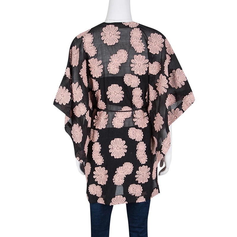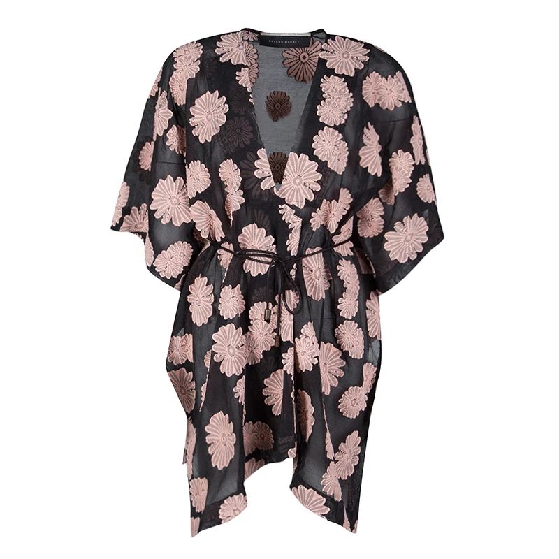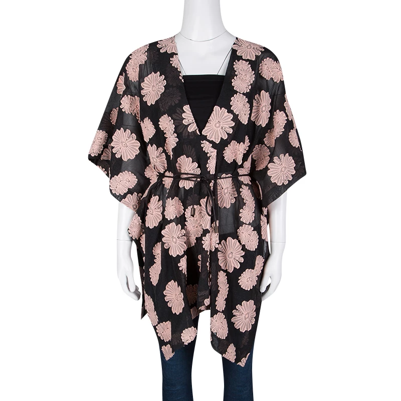 This Roland Mouret kaftan top is a lovely summer choice. It is made of cotton blend and has a relaxed shape making it comfortable to wear all day long. This black kaftan top is decorated with large floral patterns and a waist tie. Wear this sheer beauty with shorts and flat sandals.