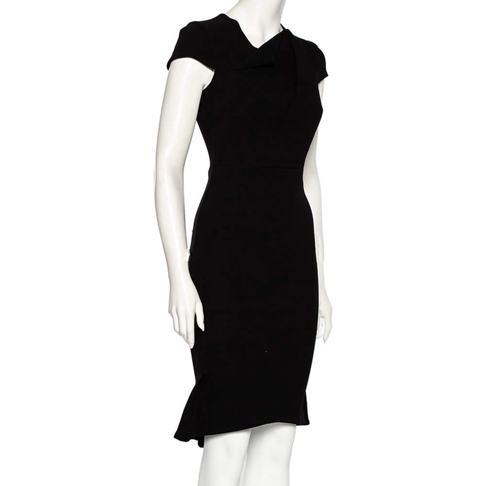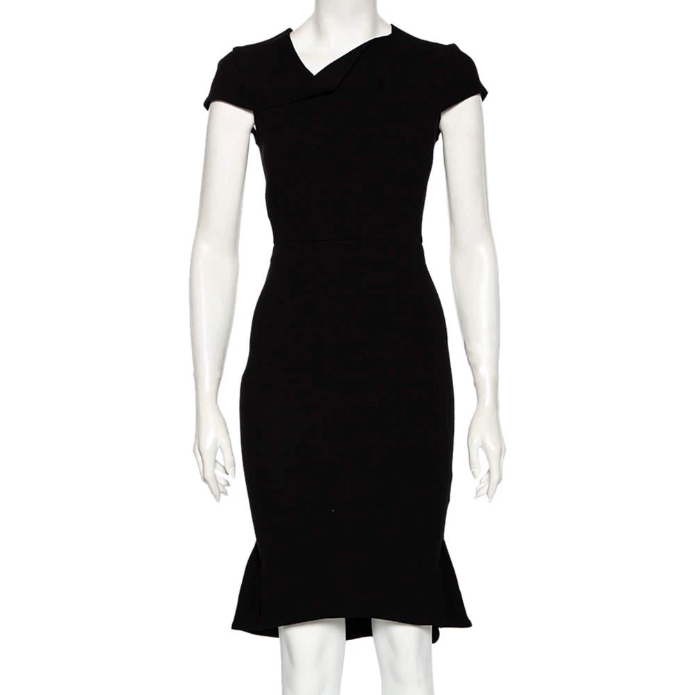 A perfect choice for special events, this midi dress from Roland Mouret will make you appear lovelier than ever. Stitched beautifully using black crepe fabric in a well-fitted silhouette, this dress exemplifies elegance in every way. Its neckline displays an asymmetrical detail. A contrasting zipper is seen on the back of this dress.