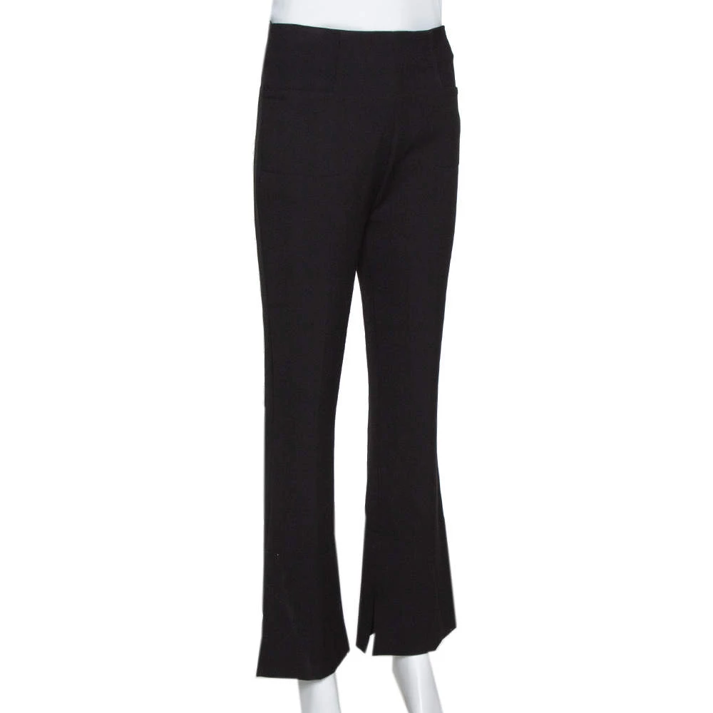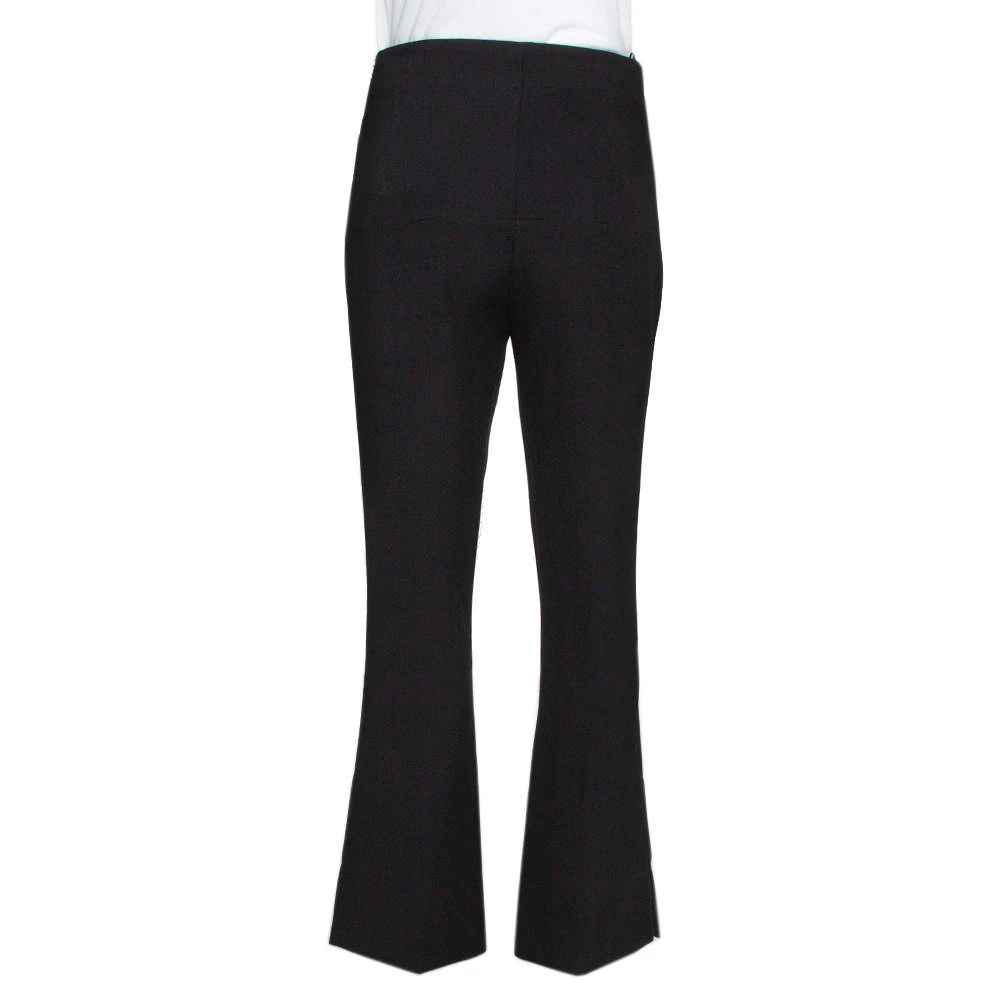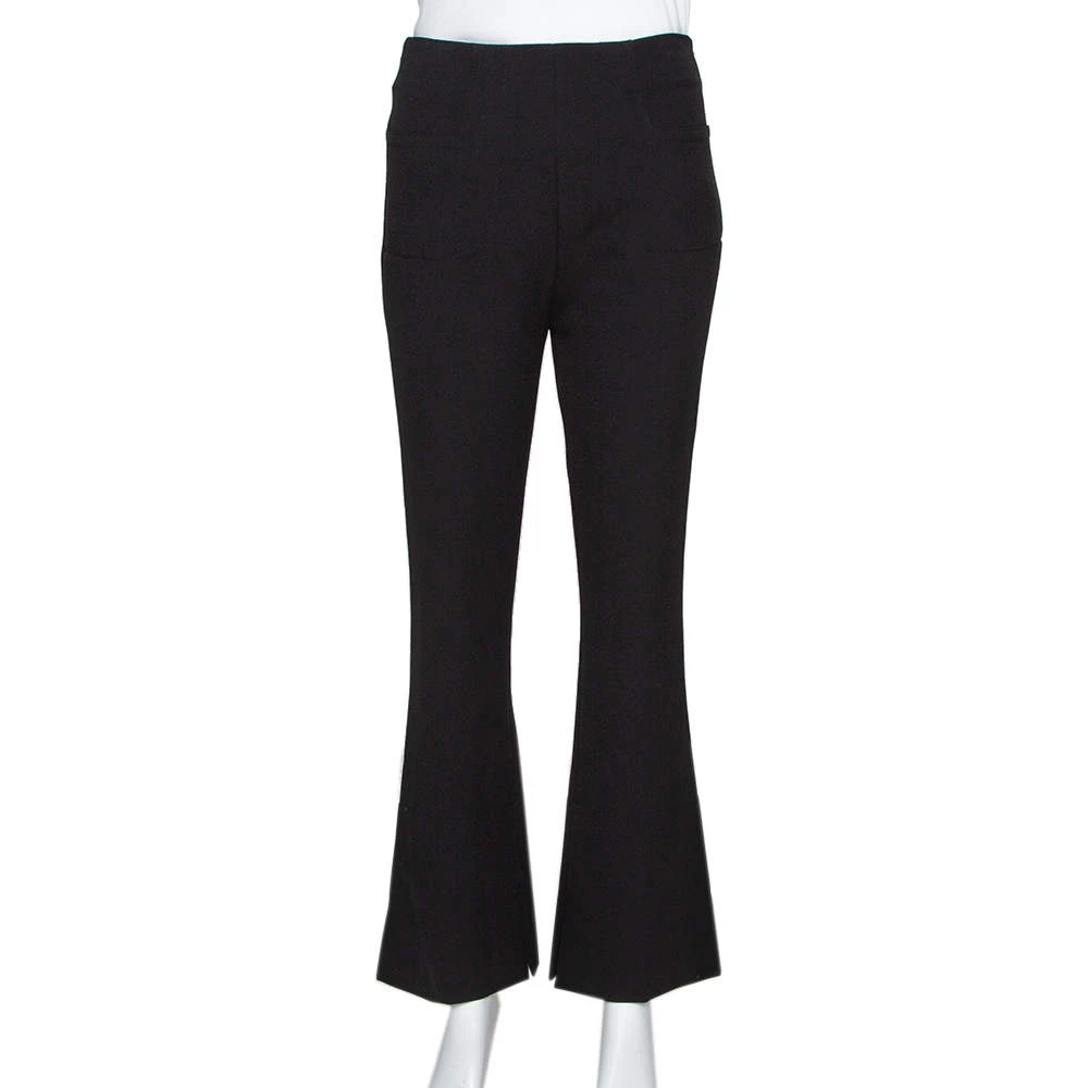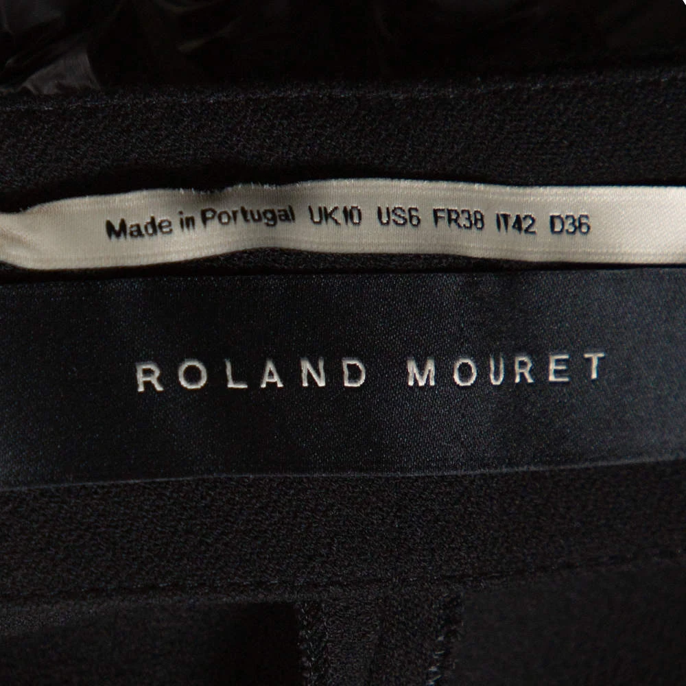 Perfect for workdays and formal events, these trousers by Roland Mouret are closet staples. Crafted from quality crepe, they come in a classic shade of black. They are styled with a flared silhouette, zip closure, two pockets and a good fit.