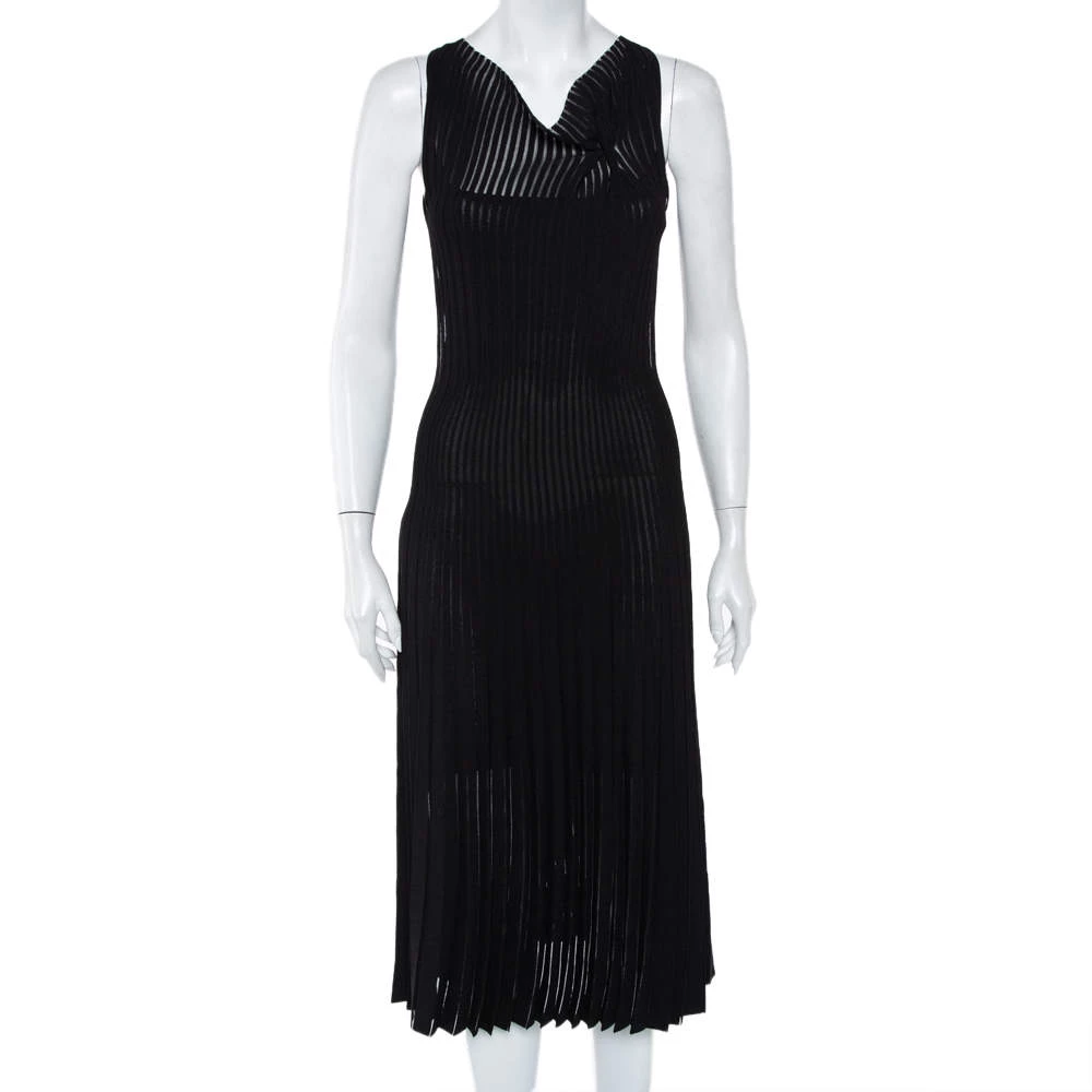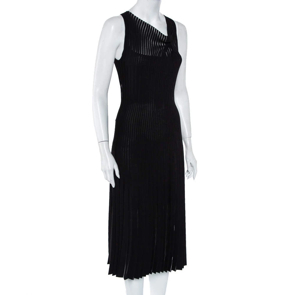 Have a joyful time in this impressive dress. This versatile black dress offers you the utmost comfort blended with sophistication. Made from paneled knit fabric, this ensemble features a drape detal and falls to a midi length.