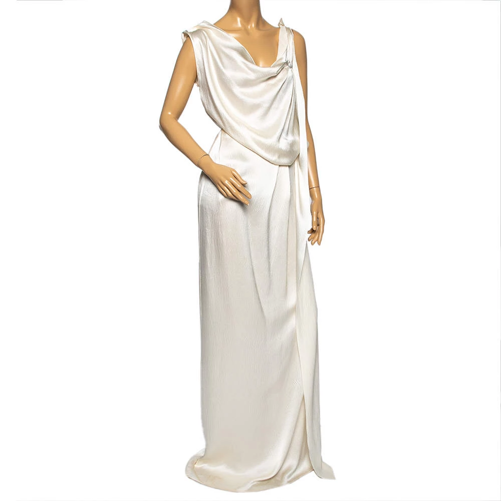 Creations from Roland Mouret emanate femininity and grace with utmost ease. This dress from Roland Mouret delivers a sense of perfection with its chic silhouette. It is made using cream textured silk fabric, which is highlighted with draped formations. It has a zip-type fastening. Make an impressive style statement by wearing this dress.