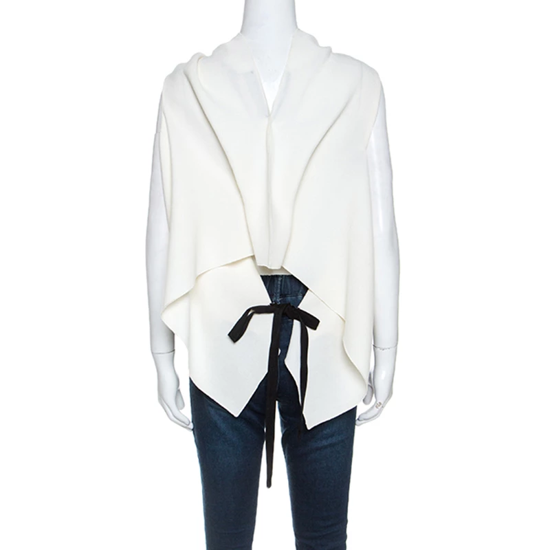 Look like a diva when you step out wearing this Roland Mouret top. It has been crafted from wool in a soul-soothing cream hue. It is perfectly styled to complement your body with fold details on the neck and on the back with a tie fastening. You’ll look amazing when you wear this top with pencil skirts and stilettos.