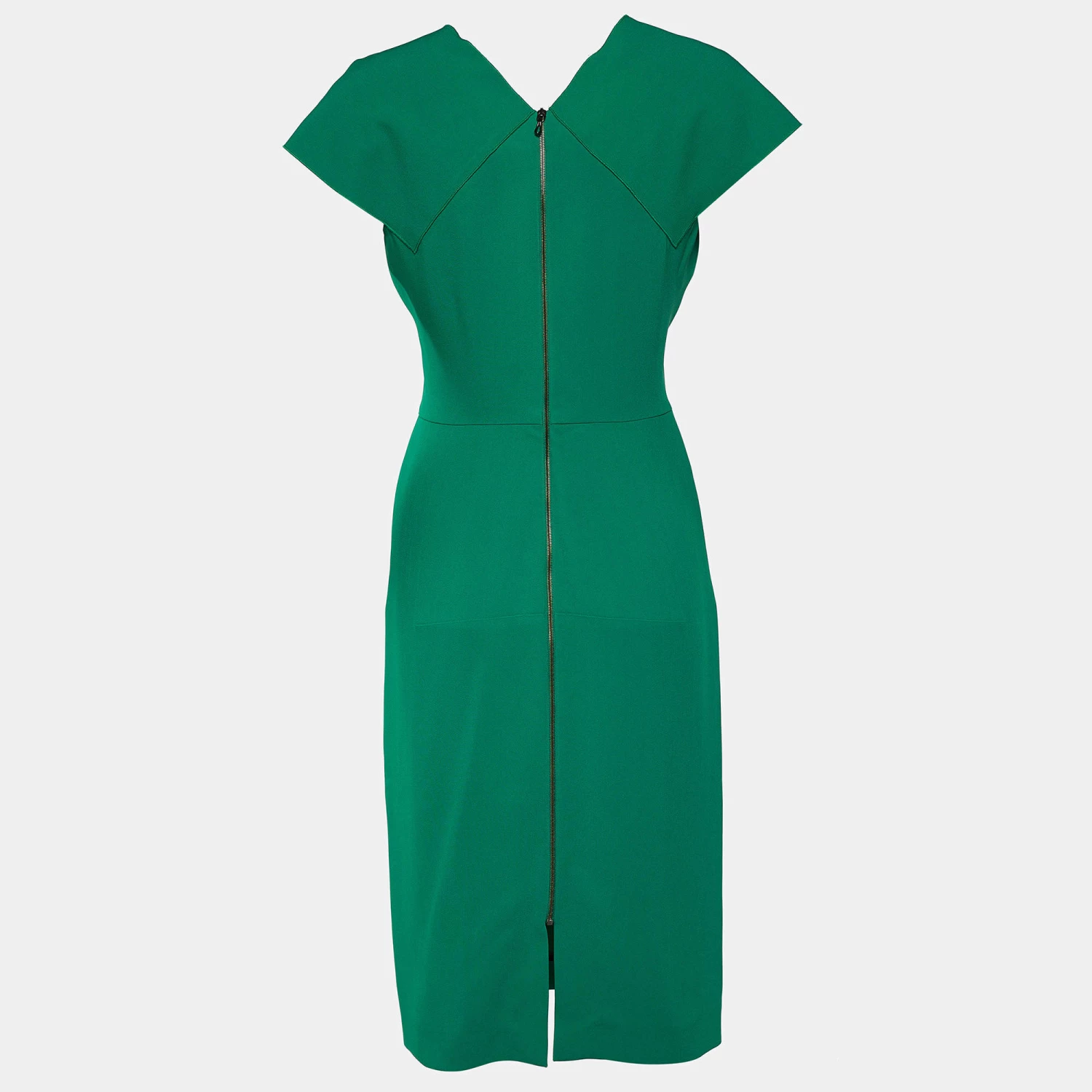 Let your cocktail party be as spectacular as this amazing dress by Roland Mouret for Selfridges Limited Edition! Imbued with an appealing green hue, this dress is cut from crepe fabric and augmented with a long zipper and a slit at the back. Style it with tall heels and minimal accessories to obtain a classy look.