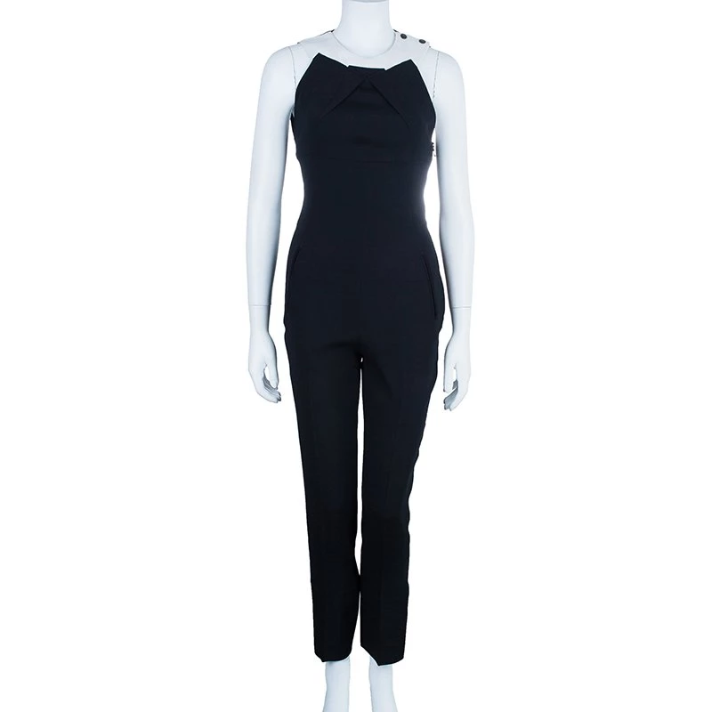 Roland Mouret is best known for fitted silhouettes and origami inspired folds that retain a feminine, sensuous feel. This amazing jumpsuit is timeless and can be dressed up or down. It features a side shoulder button fastening with a sleeveless body and a raised ankle length.