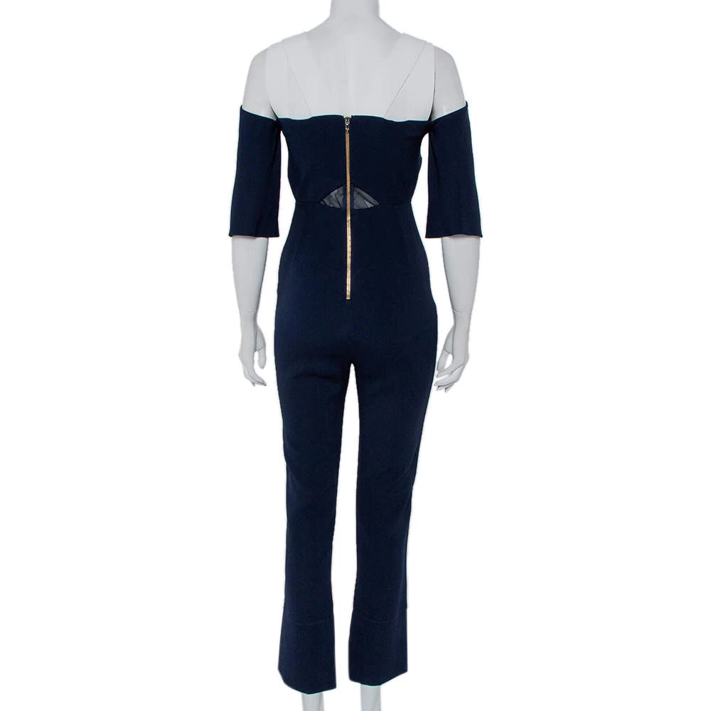 This Roland Mouret jumpsuit will equip you to deliver elegant and fashionable summer looks. Crafted from crepe, this luxurious creation comes in blue and flaunts contrasting trims. It has a cold-shoulder style that is trendy & flattering. It comes with long pants and has a relaxed fit.