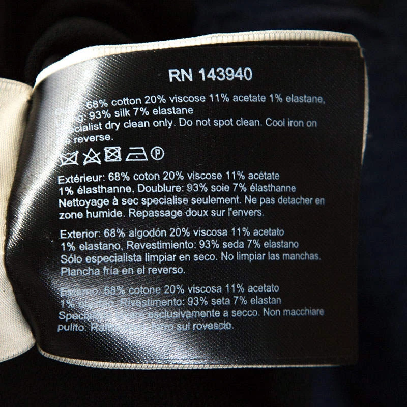 - Fabric: Shell: 68% Cotton, 20% Viscose, 11% Acetate, 1% Elastane ; Lining: 93% Silk, 7% Elastane