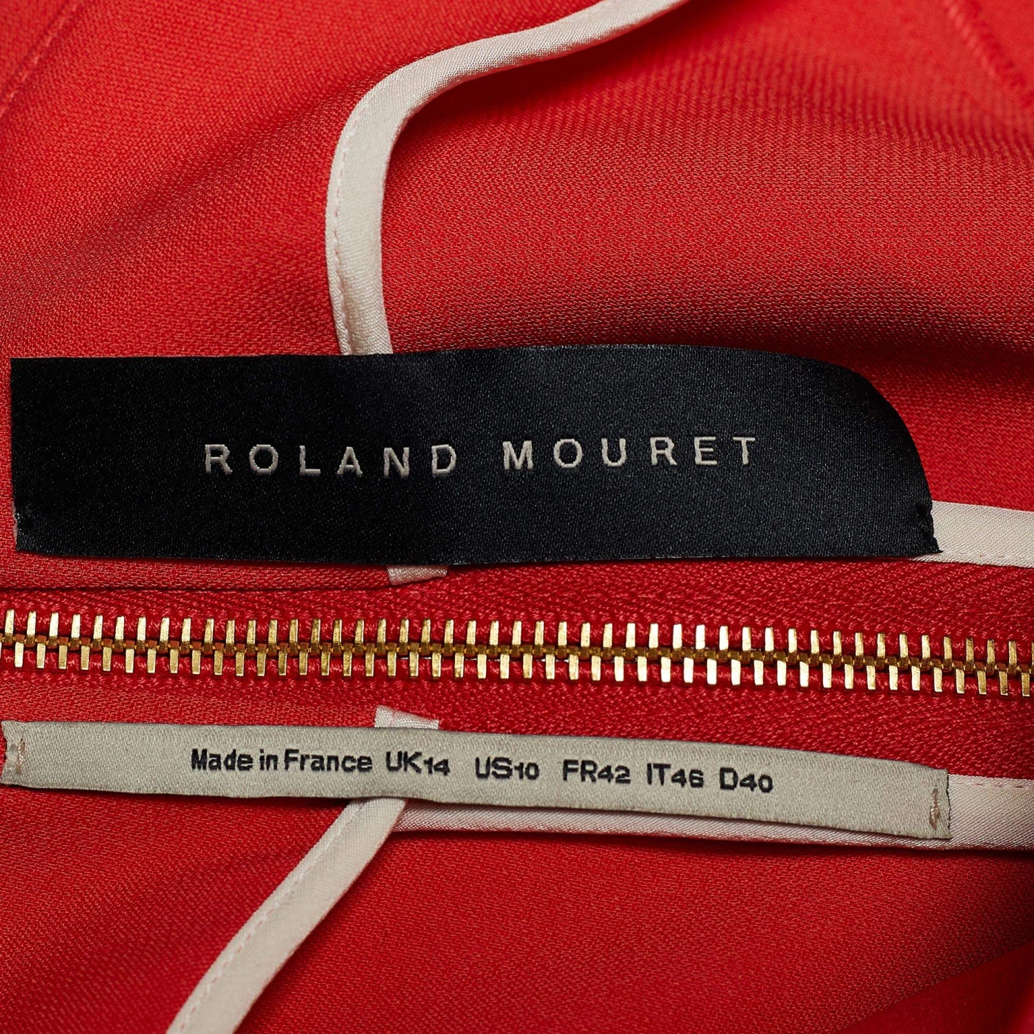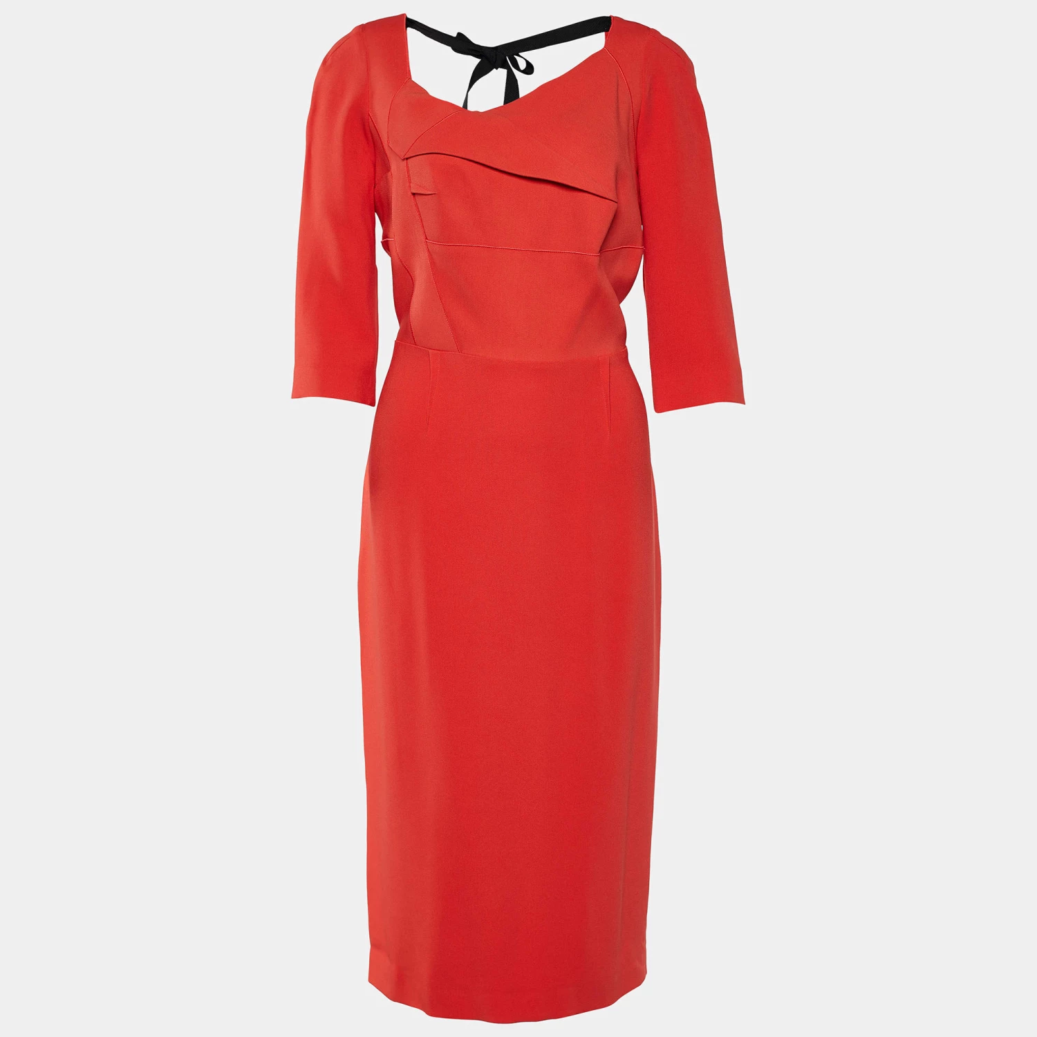 Find the pure joy of dressing elegantly and stylishly with this dress from Roland Mouret. Fashioned in orange cady fabric, this silhouette is embellished with a contrasting tie detail and provided with an elongated zipper at the back. It has an asymmetrical neckline. To make a lasting impression anywhere, pair it with black pumps.