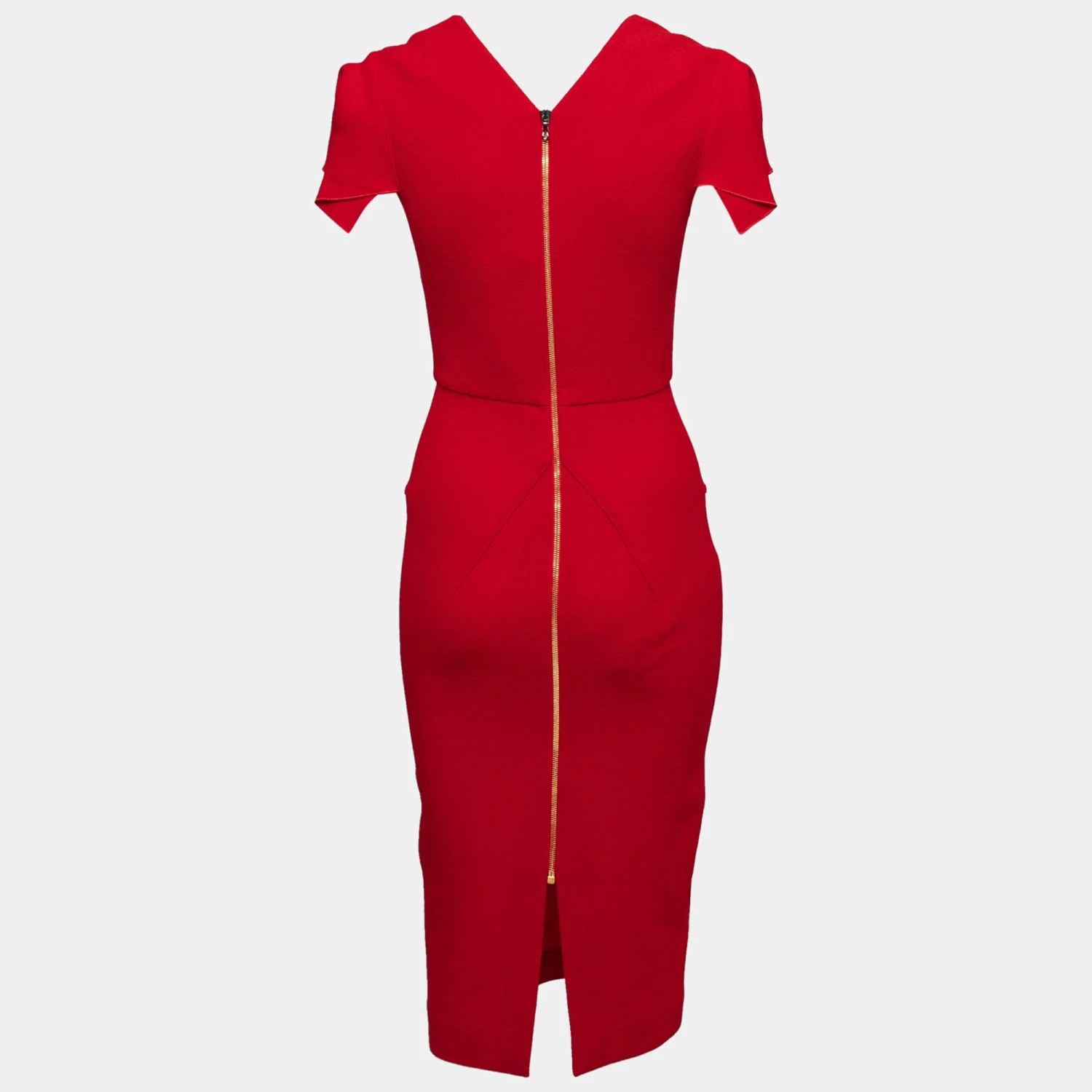 A red dress as appealing and luxe as this is on every woman’s wishlist. Roland Mouret brings you this Royston dress to accentuate your femininity and bring you elegance. It is made from red textured wool and displays cap sleeves, a fitted silhouette, and an elongated zipper at the back. Elevate its look with stunning pumps.