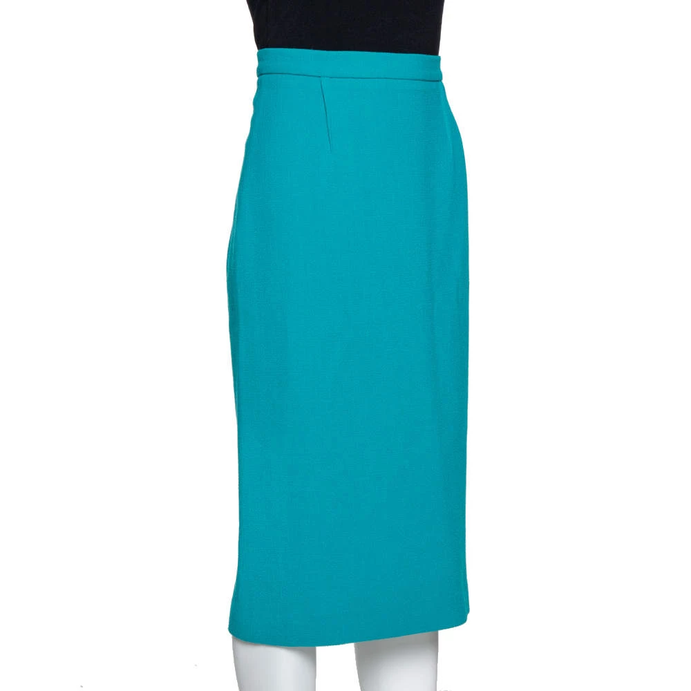 Minimalistic yet fashionable, this pencil skirt from Roland Mouret is perfect for channeling an air of elegance. The creation is made of wool and stands out in a lovely teal blue. It is complete with a full zip closure at the back.